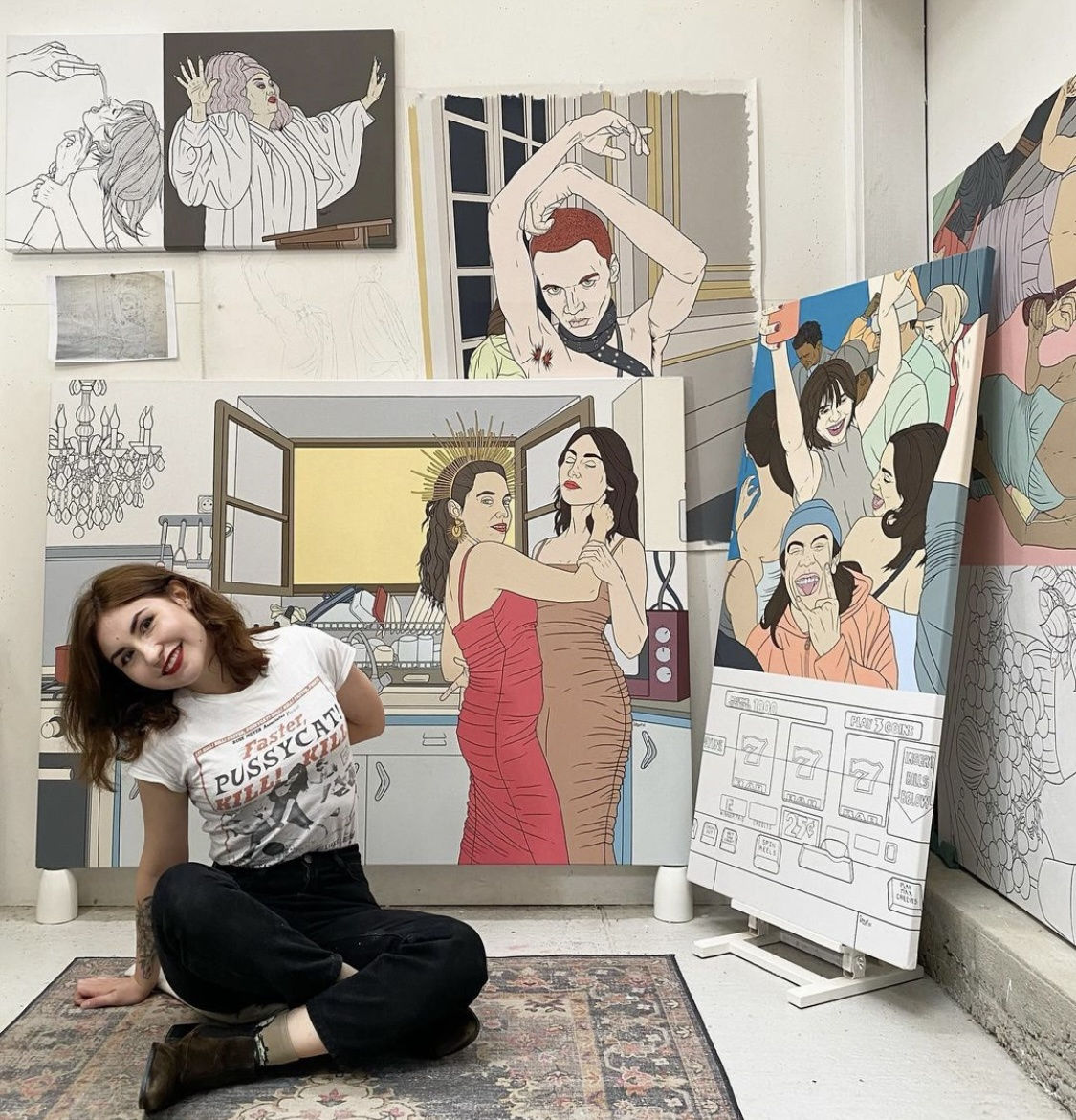 Les sujets présents dans cette nouvelle exposition font en effet référence à plusieurs grands tableaux tout en étant ancrés dans la société contemporaine où tu nous parles de féminisme, de fêtes, de culture queer et de révolution !